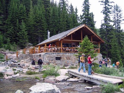 von ihren Männern entfernt. Das Teehaus am Agnes Lake ist aus Holz und auch mit