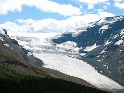 sich der Blick auf das Columbia Icefield, dass auf der anderen Seite des Tals